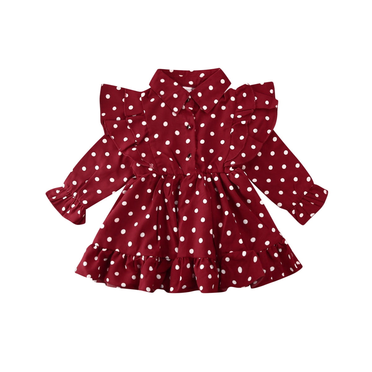 Puloru Baby Girl Polka Dot Dress Long Sleeve Ruffled Lapel Elastic Waist Walmart Com